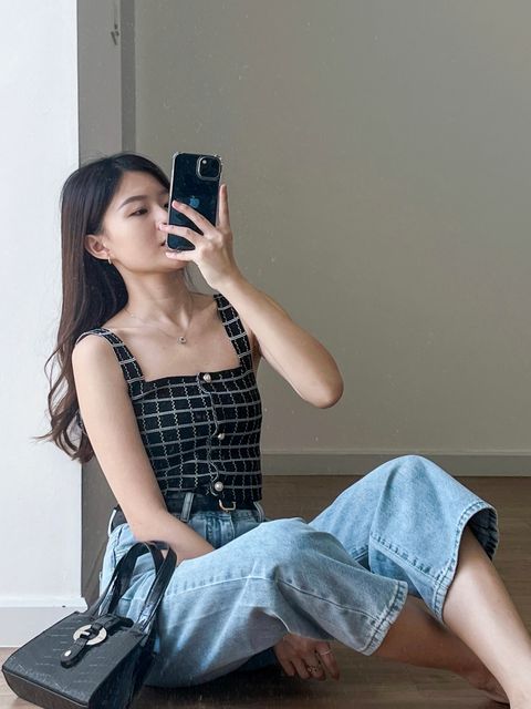Celeste Checkered Top - Black